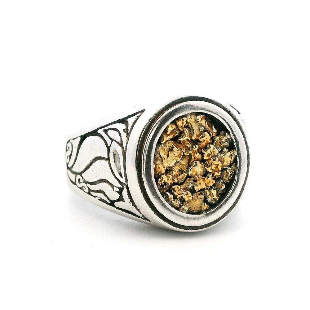 Flower Gold Nugget Ring .925 & Alaskan Gold Nugget Size 7