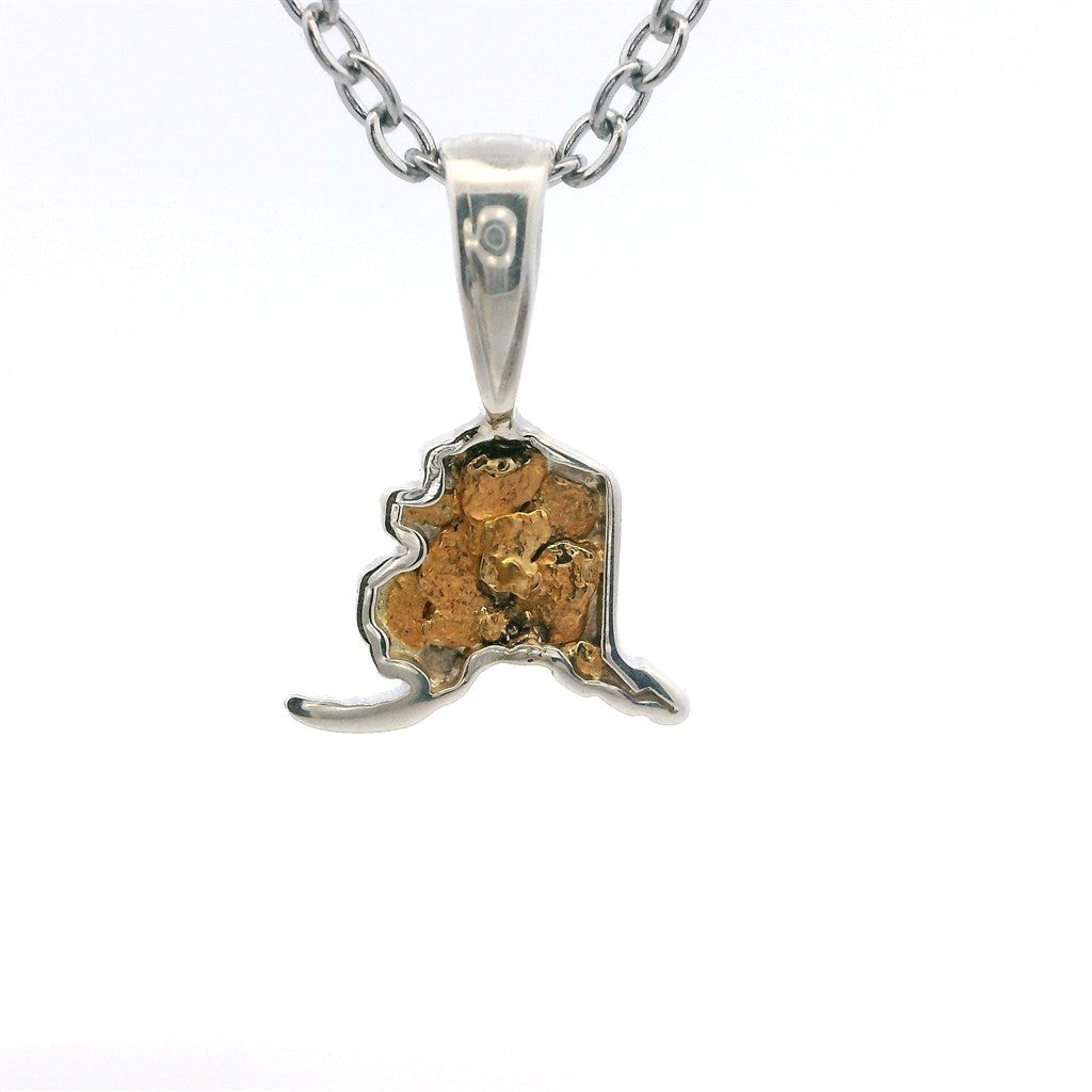 Alaskana Alaskan Gold Nugget Necklace Partial Continual 18 " long On a 14 Karat Gold Yellow Figaro Chain Aqua