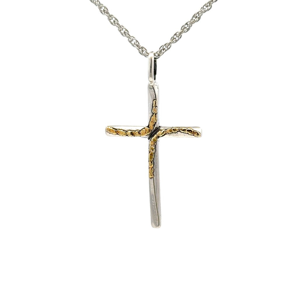 Cross Style Contemporary Pendant Sterling Silver & Alaskan Gold Nugget