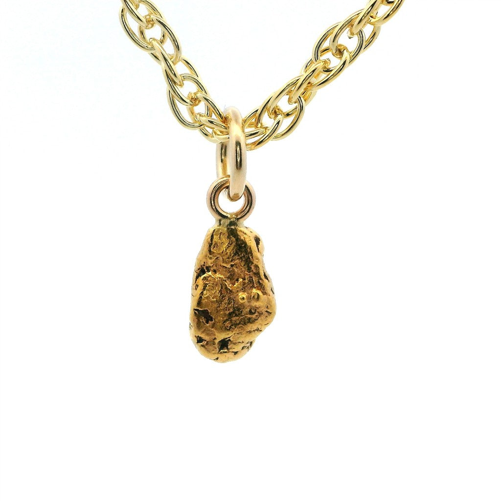 Alaskan Gold Nugget Necklace Y Style 18 " long On a 14 Karat Gold Yellow Figaro Chain Diamond