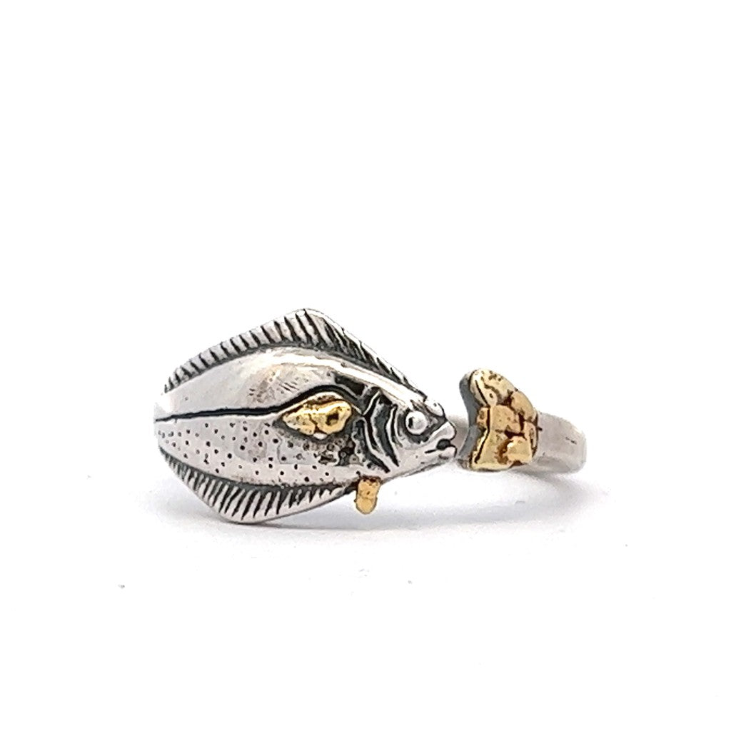 Halibut Adjustable Ring Sterling Silver & Alaskan Gold Nugget Size 8