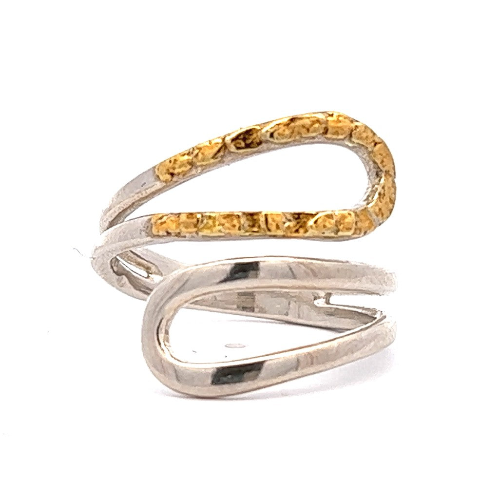 Free Form Ring 3 mm wide Sterling Silver & Alaskan Gold Nugget Size 6