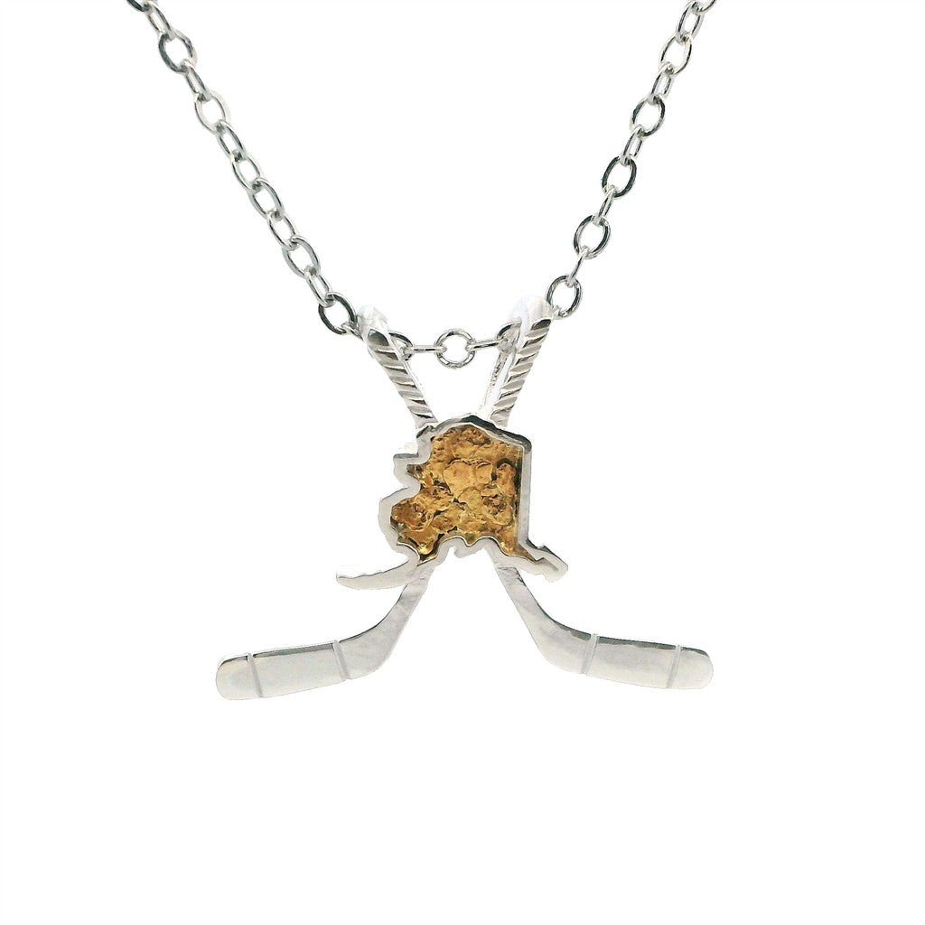 In Line Style Hockey Pendant Sterling Silver & Alaskan Gold Nugget