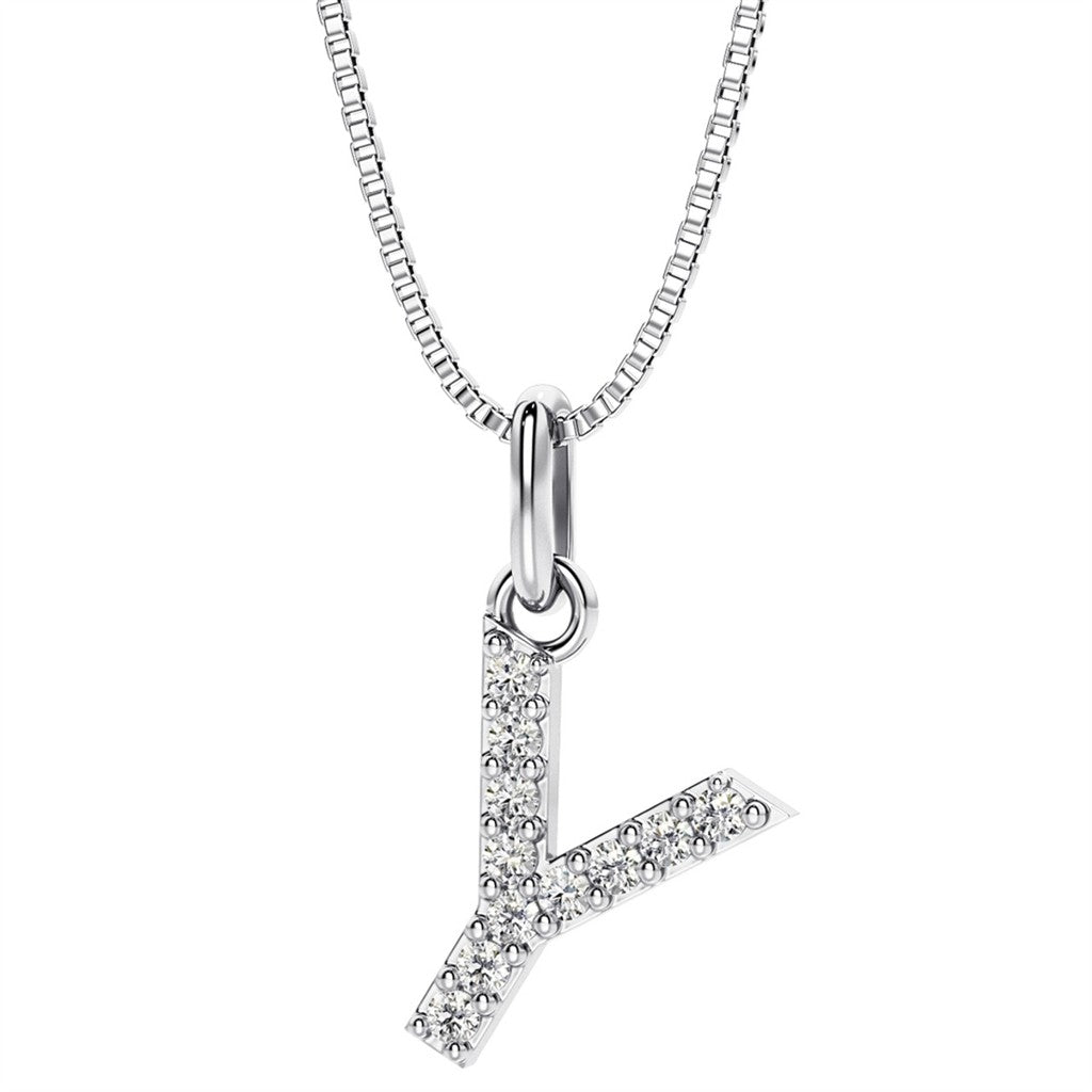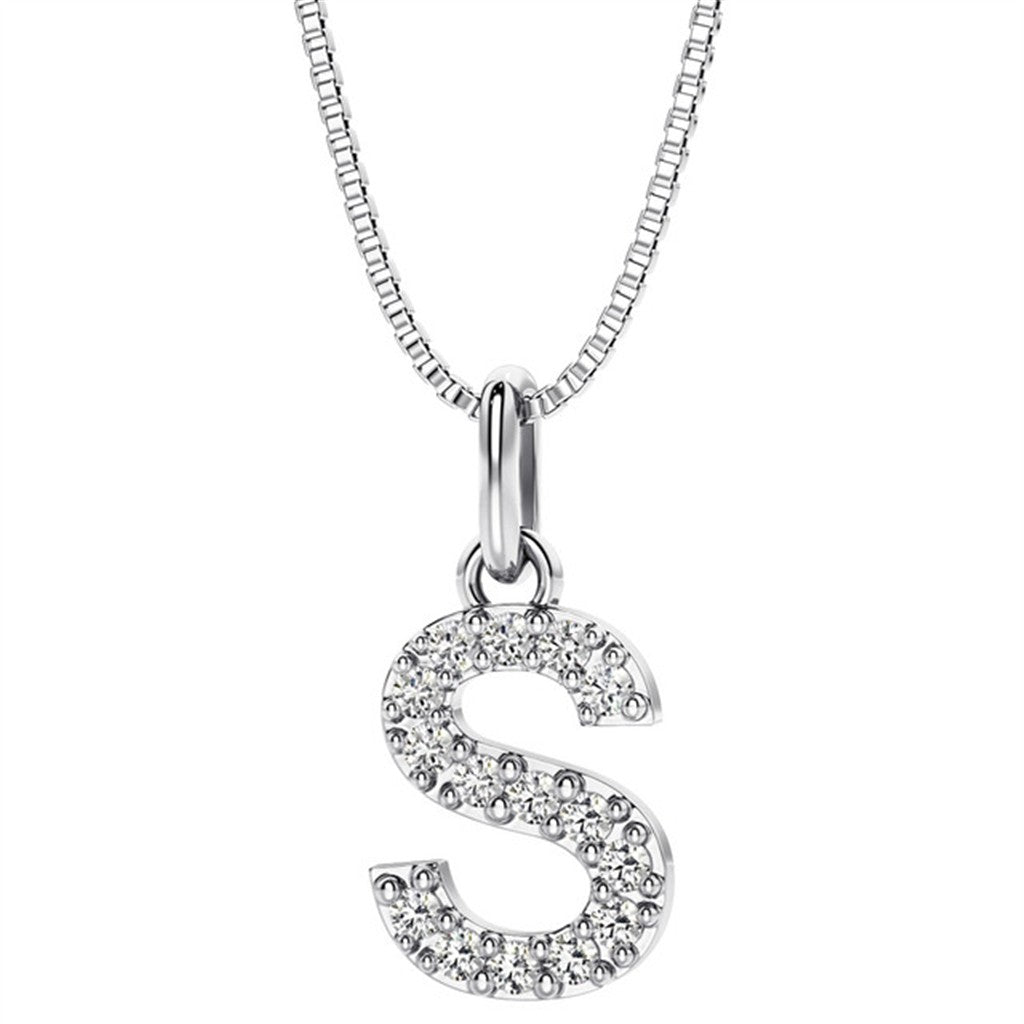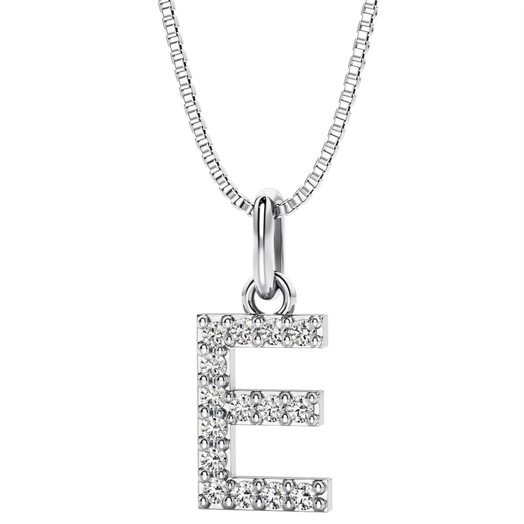 Initial Pendant Diamond Lab Grown Sterling Silver White with Round F/G Lab Diamond