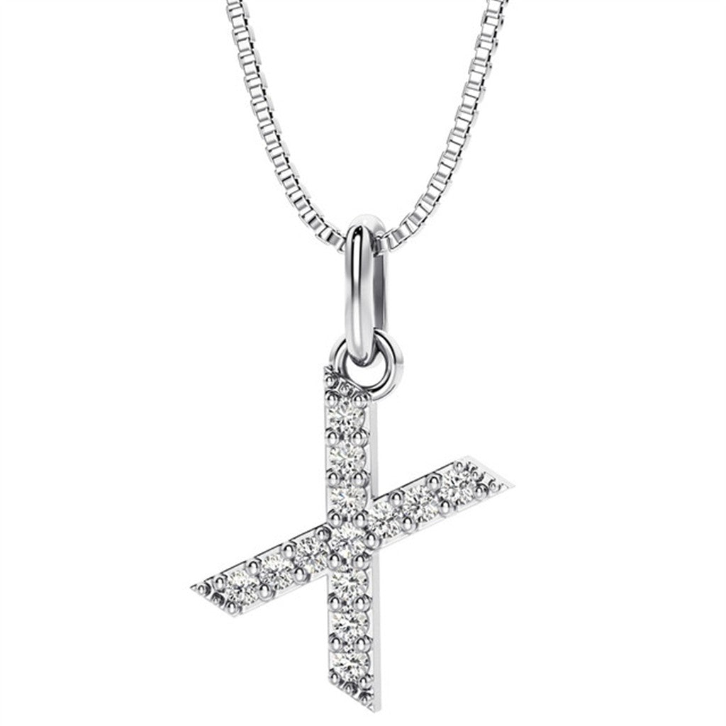 Initial Pendant Diamond Lab Grown Sterling Silver White with Round F/G Diamond