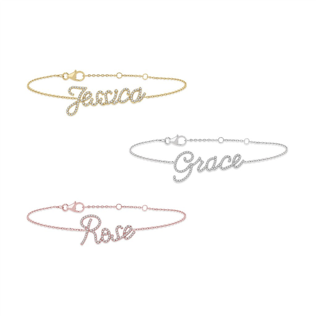 Cable Link Style AMELIA Diamond Bracelet 10 Karat Gold Yellow With Round Diamond 7" Long