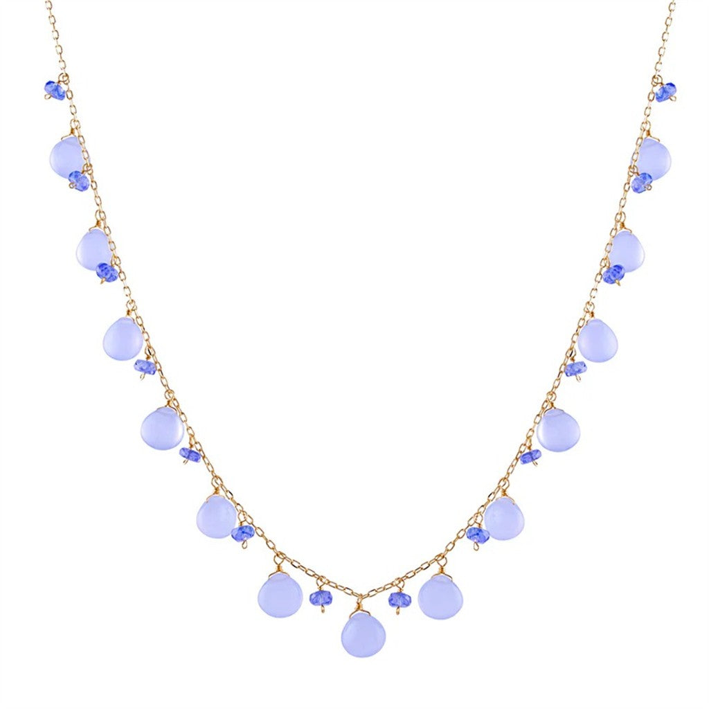 Y Style Colored Stone Necklace 14 Karat Gold Yellow With Chalcedony & Turquoise & Iolite 17" Long