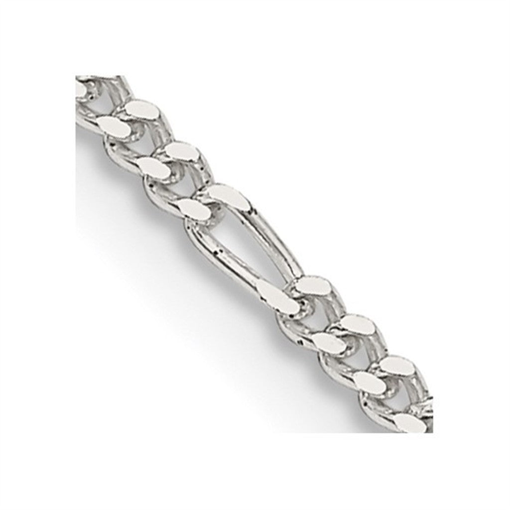 White Sterling Silver 2.85 MM Figaro Chain 20" Long