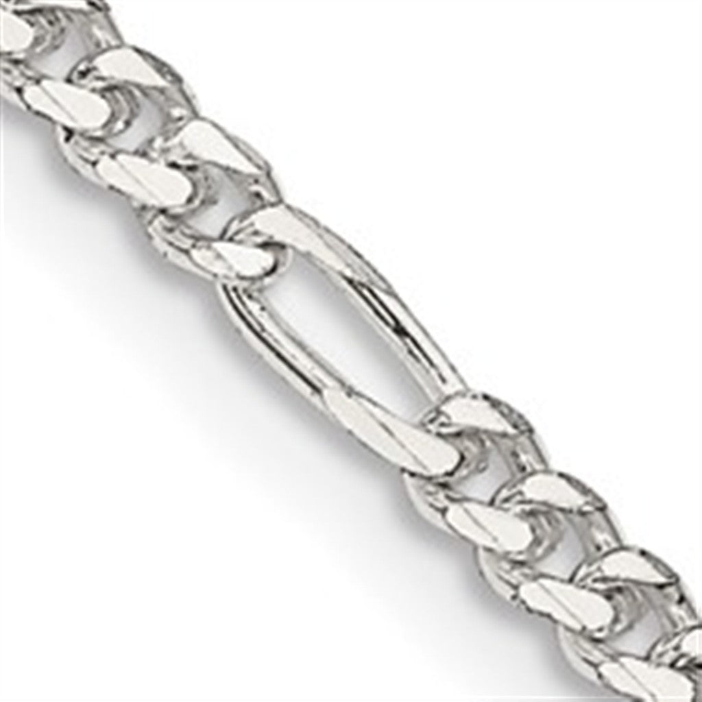 White Sterling Silver 4.5 MM Figaro Chain 24" Long