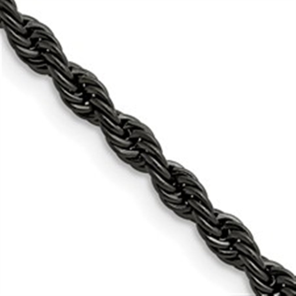 Black IP Stainless Steel 4 MM Rope Chain 24" Long