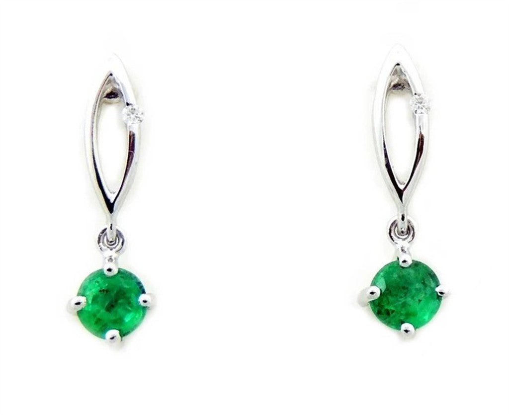 Earrings Precious Metal Colored Stone Dangle Lever Backs 14 Karat Gold White With 0.51ctw Emeralds 0.018 ctw & Diamonds