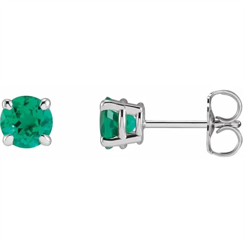 14 Karat Gold White Studs Earrings 0.54ctw Round Emeralds
