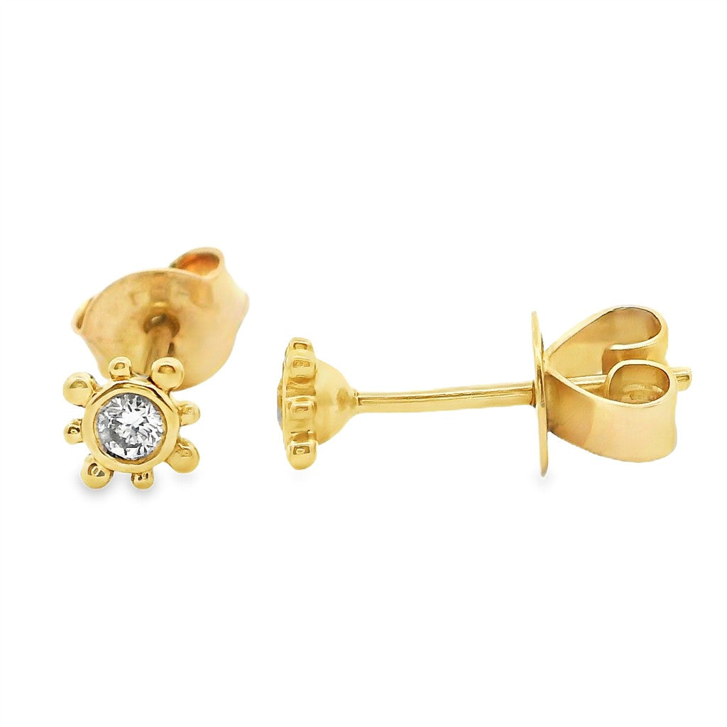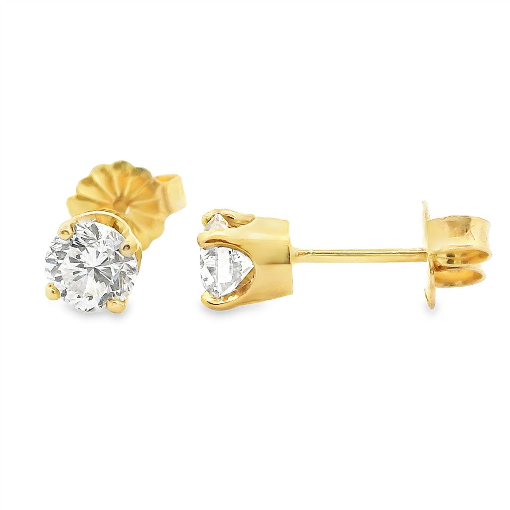 Single Stone Studs Earrings 14 Karat Gold Yellow