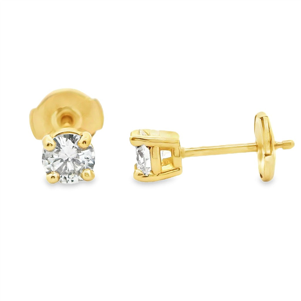 Diamonds Single Stone Studs Earrings 14 Karat Gold Yellow 0.10 Carat Total Weight