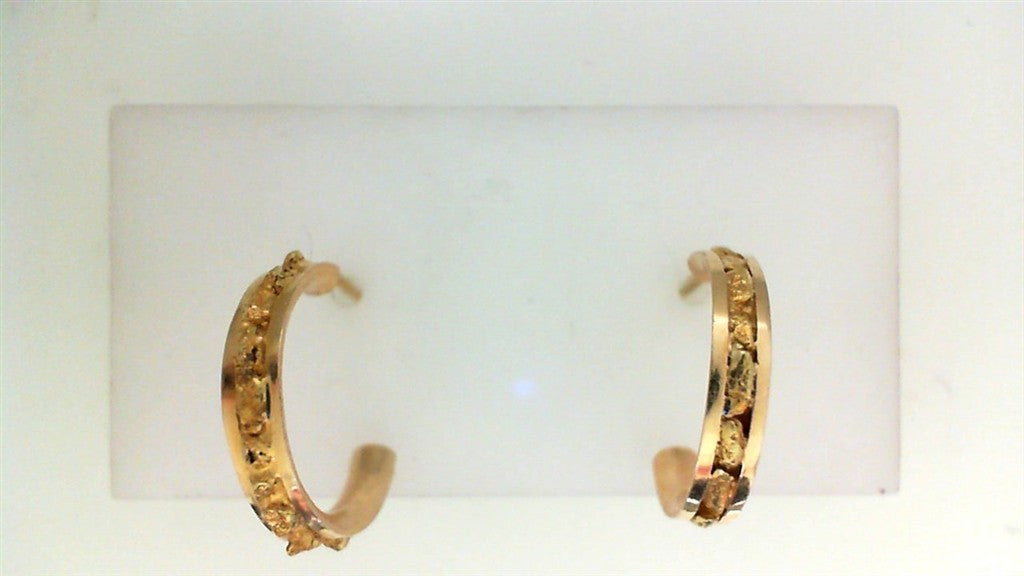 Earrings Track Style Hoop 14 Karat Gold & Alaskan Gold Nugget