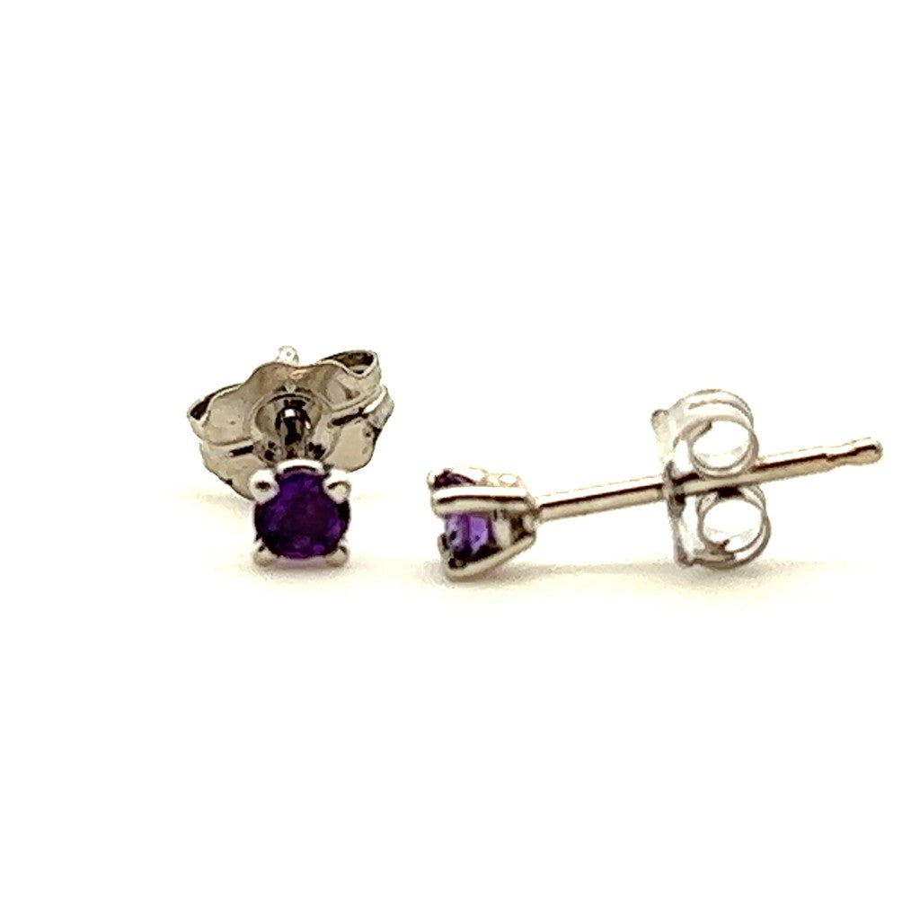 14 Karat Gold Yellow Stud Earrings 1.50ctw Round Amethysts