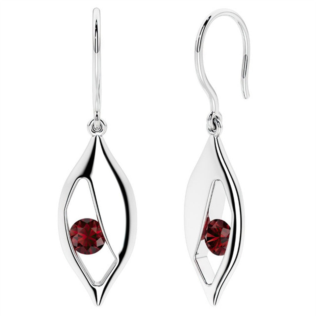 Single Stone Stud Style Sterling Silver White With Round Garnet Mozambiques