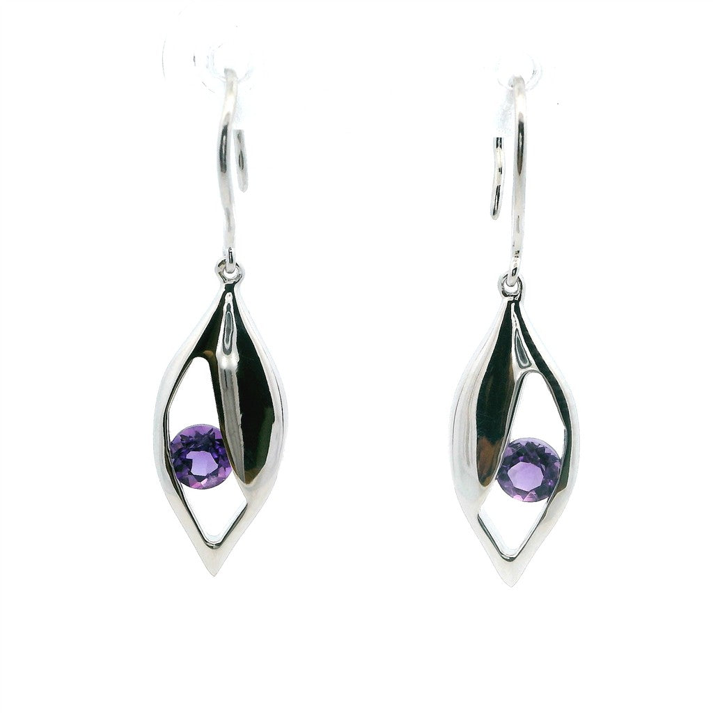 Dangle Drops Style Sterling Silver Two Tone With Round Abalone