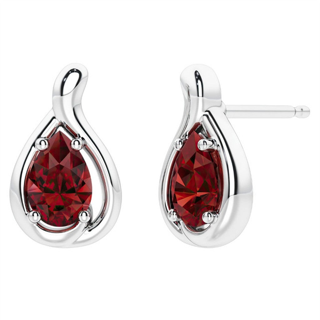 Garnet Mozambiques Single Stone Studs Sterling Silver Earrings With Colored Stone Sterling Silver White