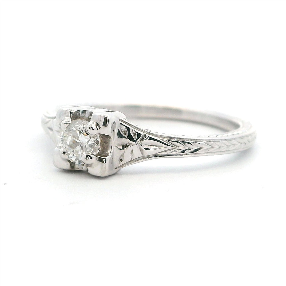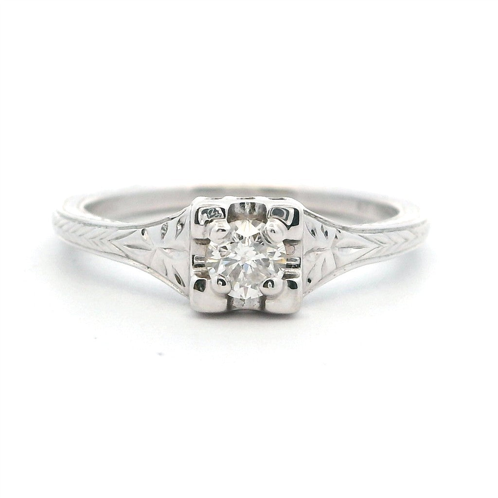 Vintage Style Diamond Engagement Ring18 Karat Gold White