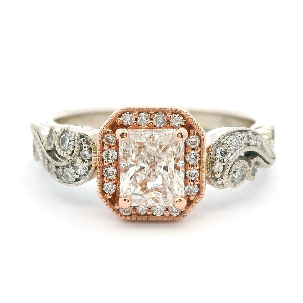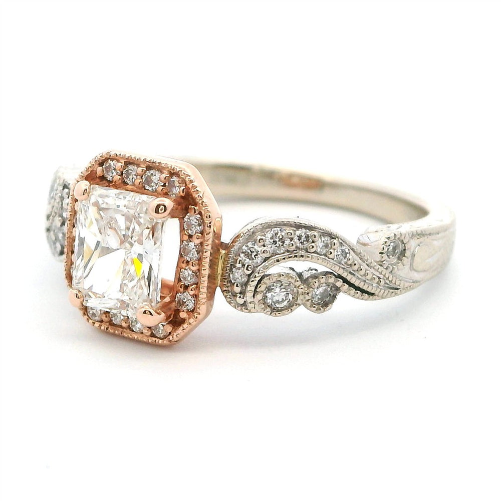 Halo Style Diamond Engagement Ring14 Karat Gold White & Rose