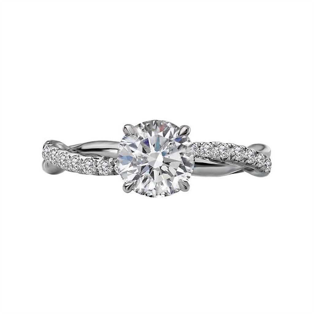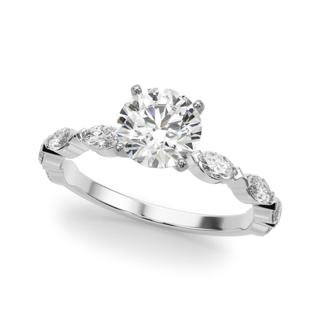 Solitare Accent Style Diamond Engagement Ring 14 Karat Gold White (Center Stone Not Included)