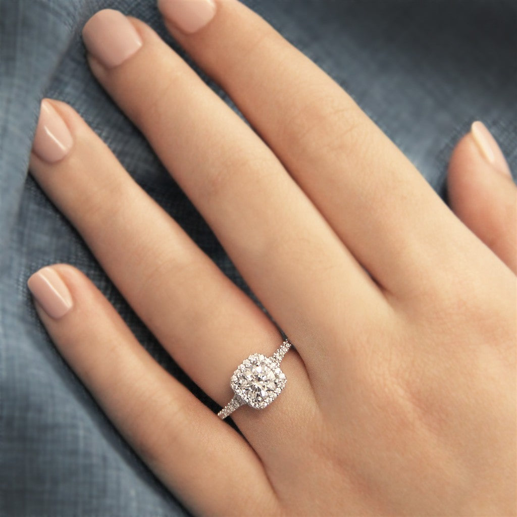 Halo Style Diamond Engagement Ring Sterling Silver White