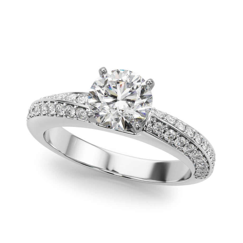 Solitare Accent Style Diamond Engagement Ring Alloy White (Center Stone Not Included)