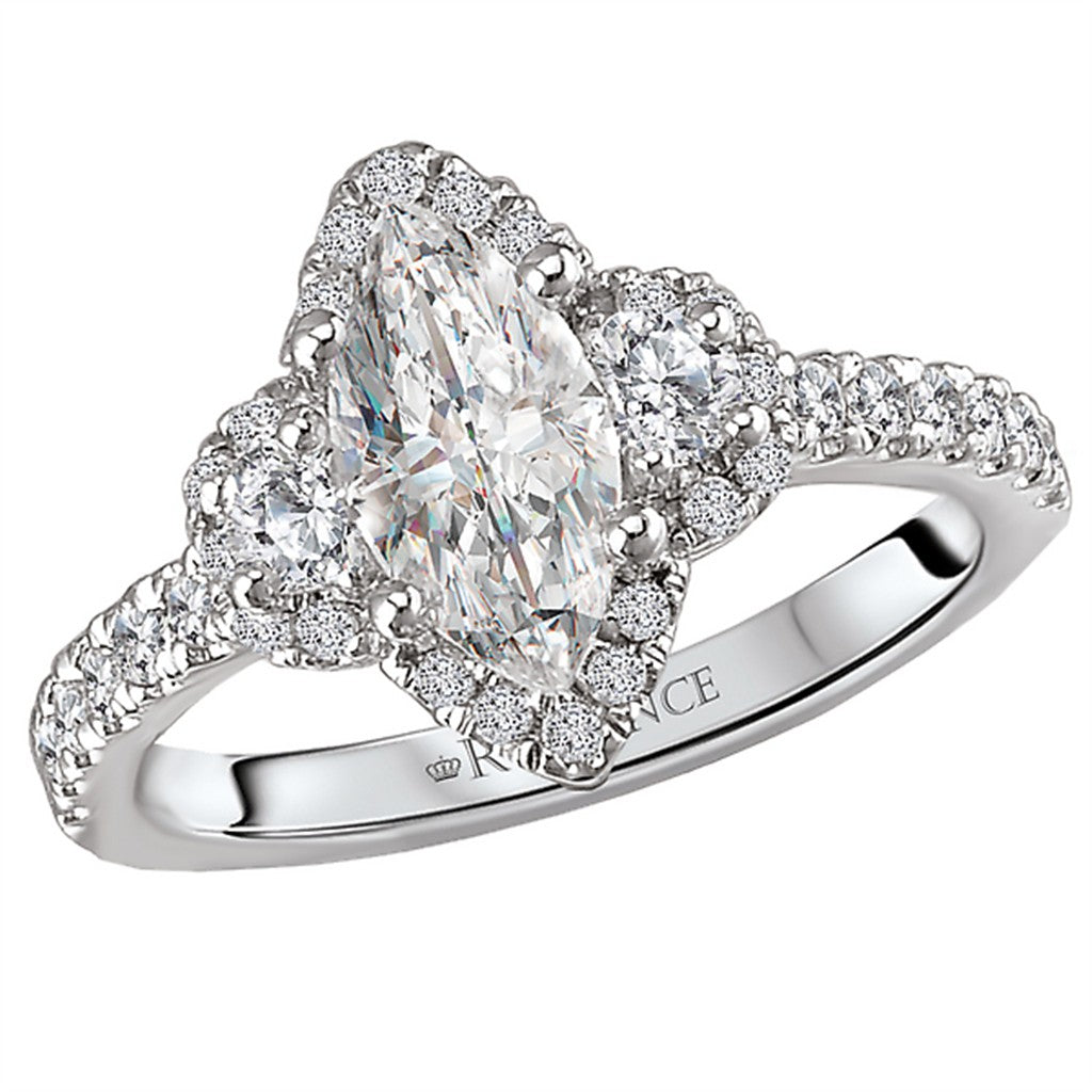 Solitare Accent Style Diamond Engagement Ring Alloy White (Center Stone Not Included)