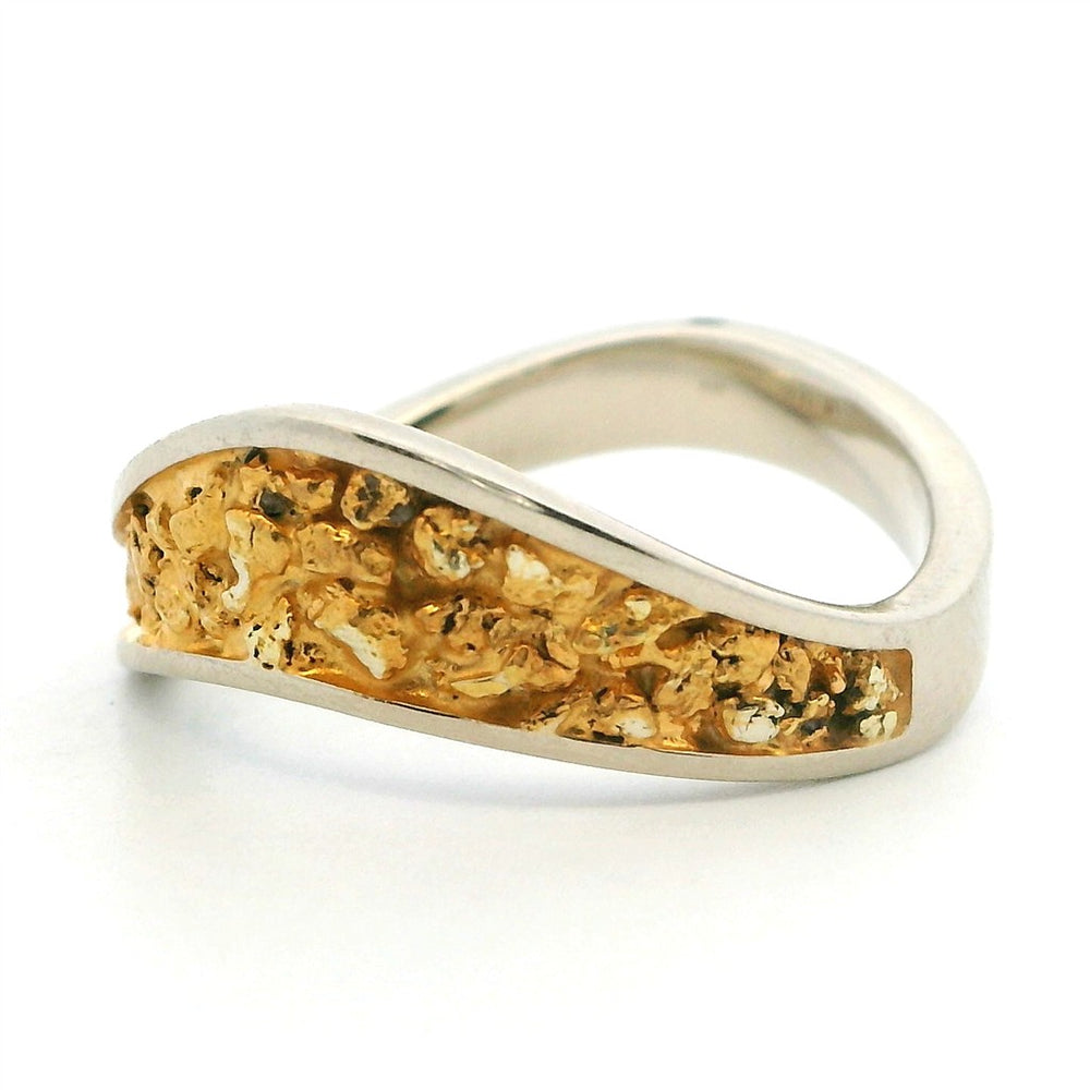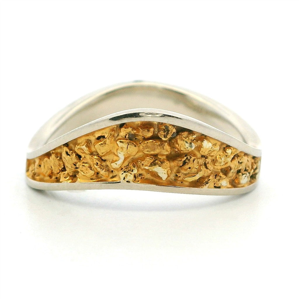 Theme Ring 3 mm wide Sterling Silver & Alaskan Gold Nugget Size 7