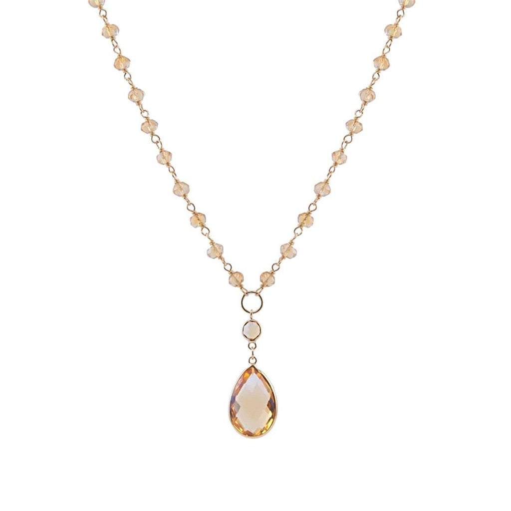 Bead Colored Stone Necklace 14 Karat Gold Yellow With Citrine 18" Long
