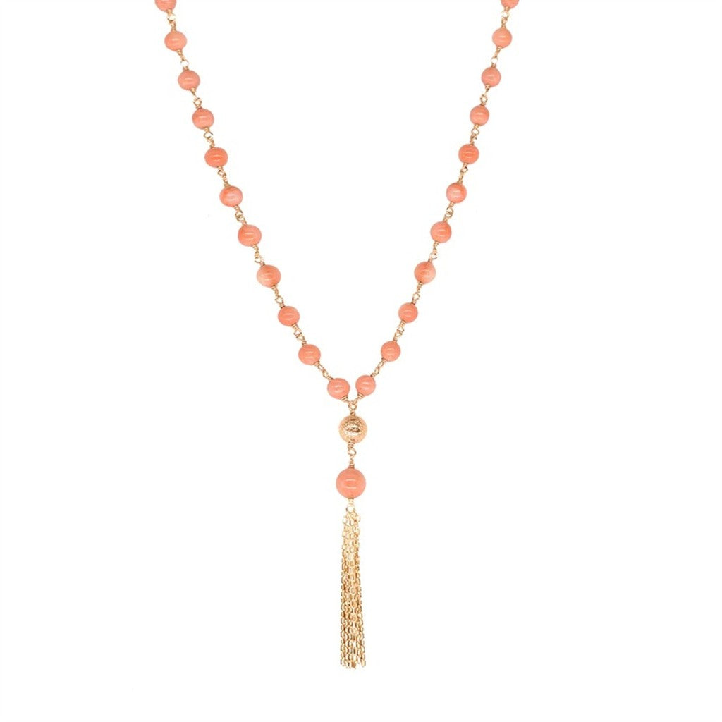 Y Style Colored Stone Necklace 14 Karat Gold Yellow With Corals 17" Long
