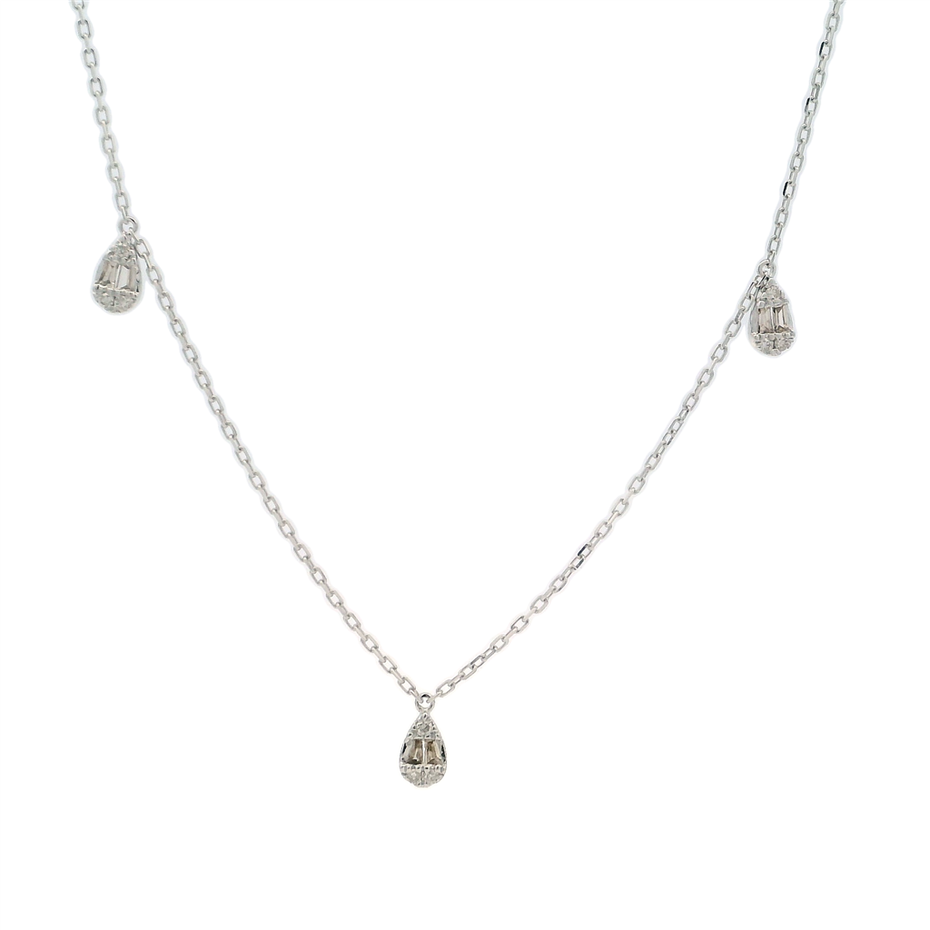 Multi Drop Necklace 18 Karat Gold White With Diamonds & Diamonds 18" Long