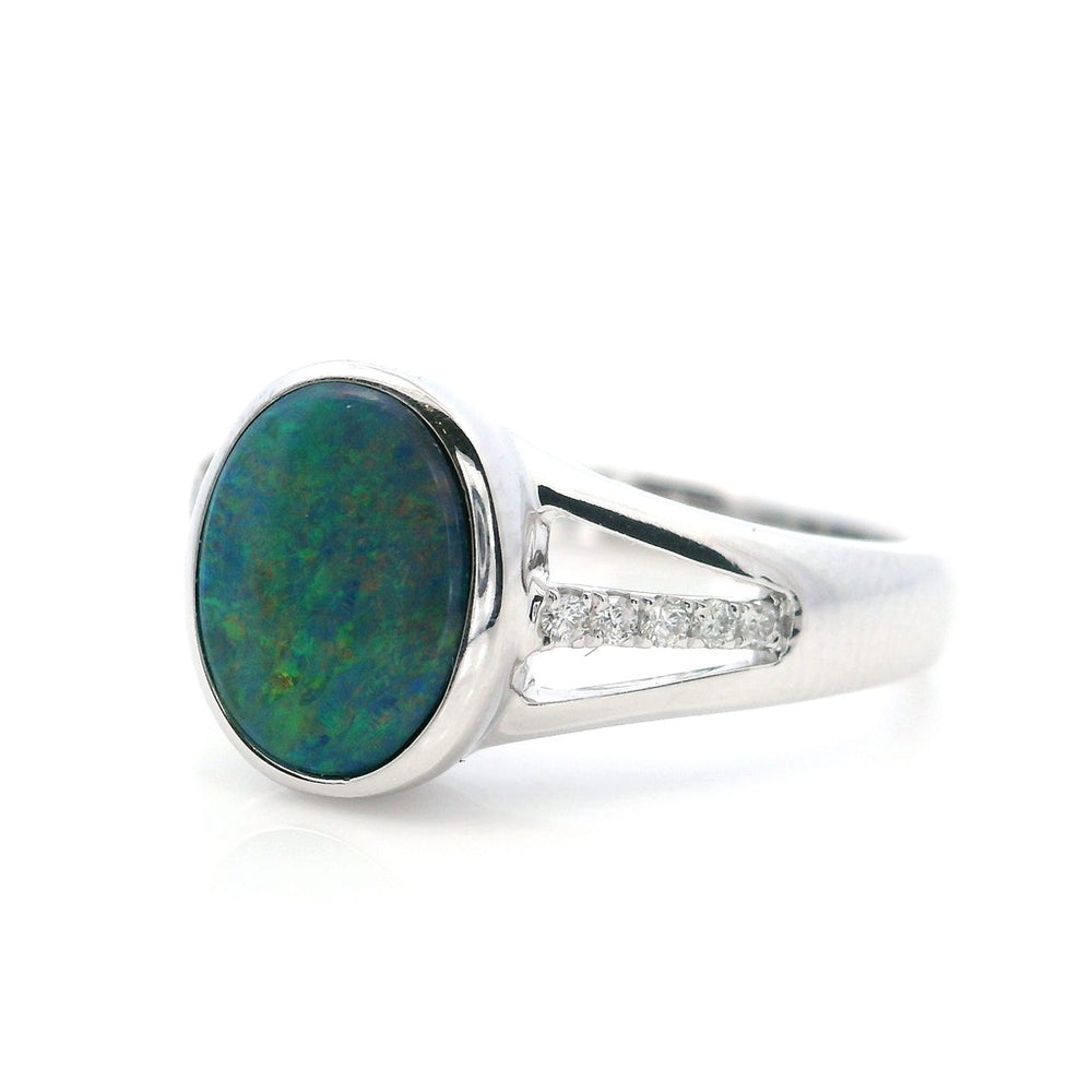 Geometric Style Colored Stone Ring 14 Karat Gold White with Opal & Diamond Accent size 7