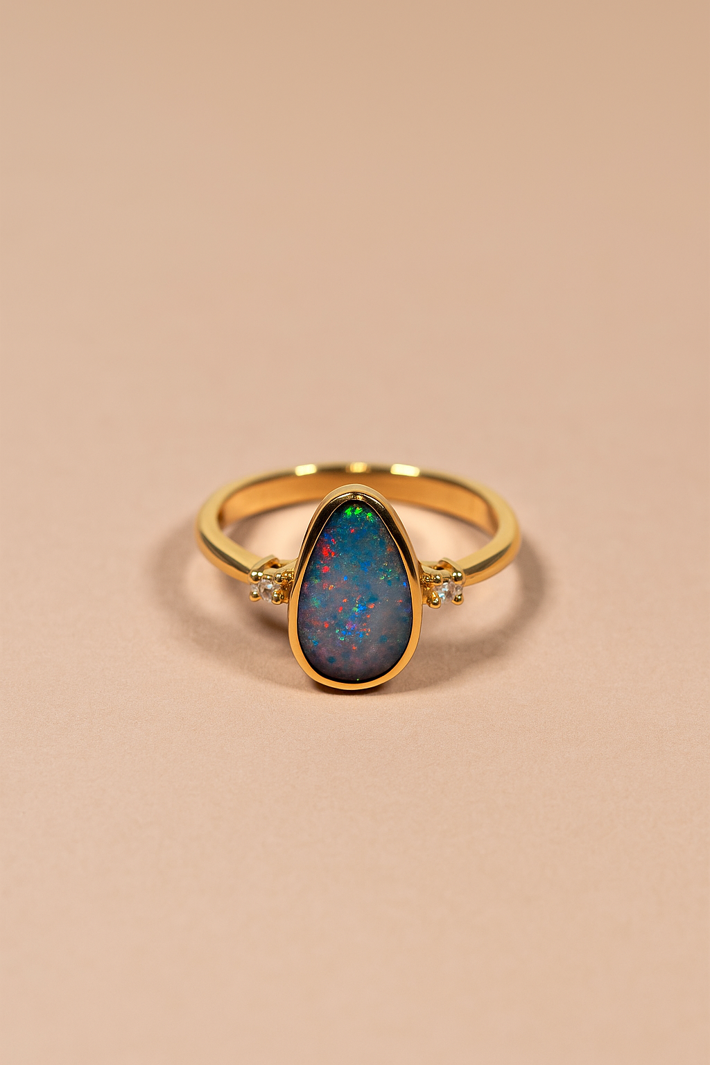 14KT Yellow Gold Free Form Opal & Diamond Ring