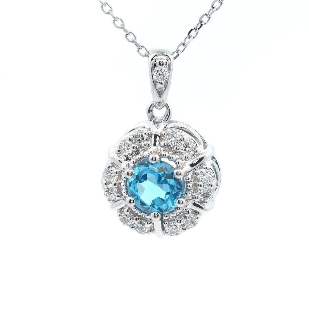 Halo Pendants 10 Karat Gold White with Oval Blue Topaz & Round I/J Diamonds