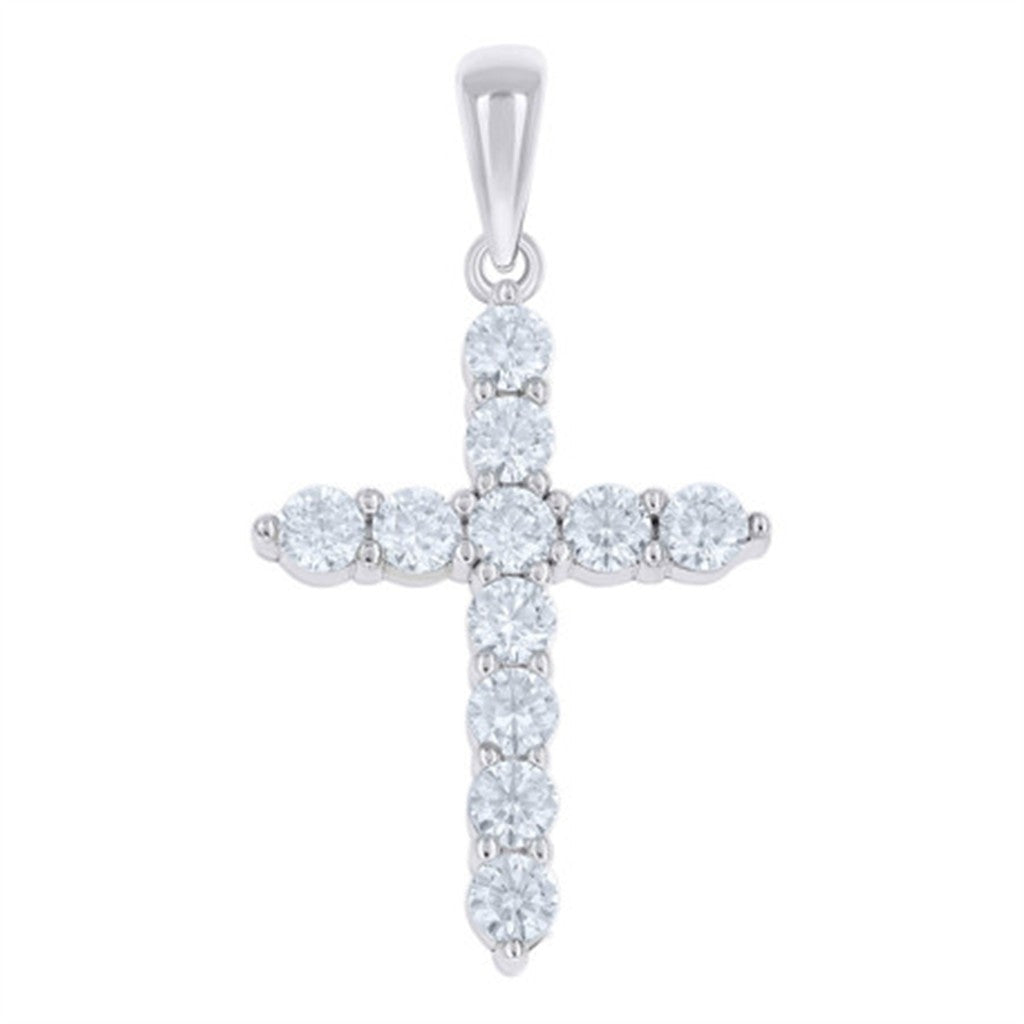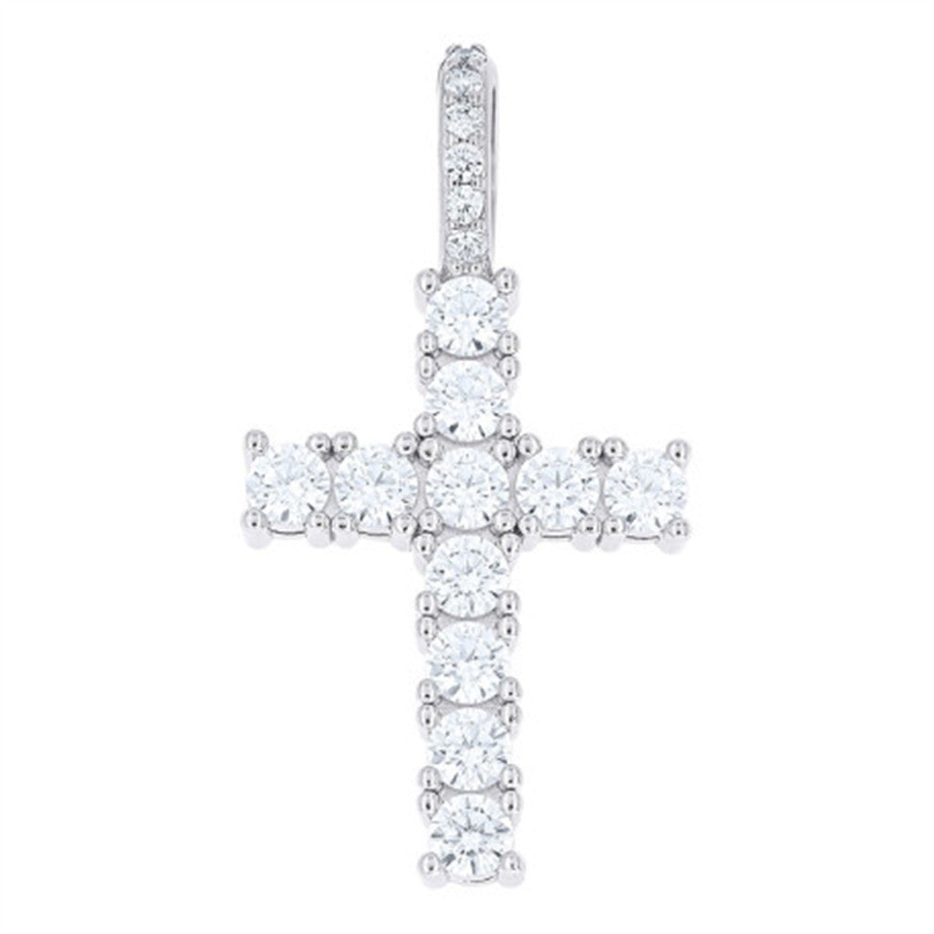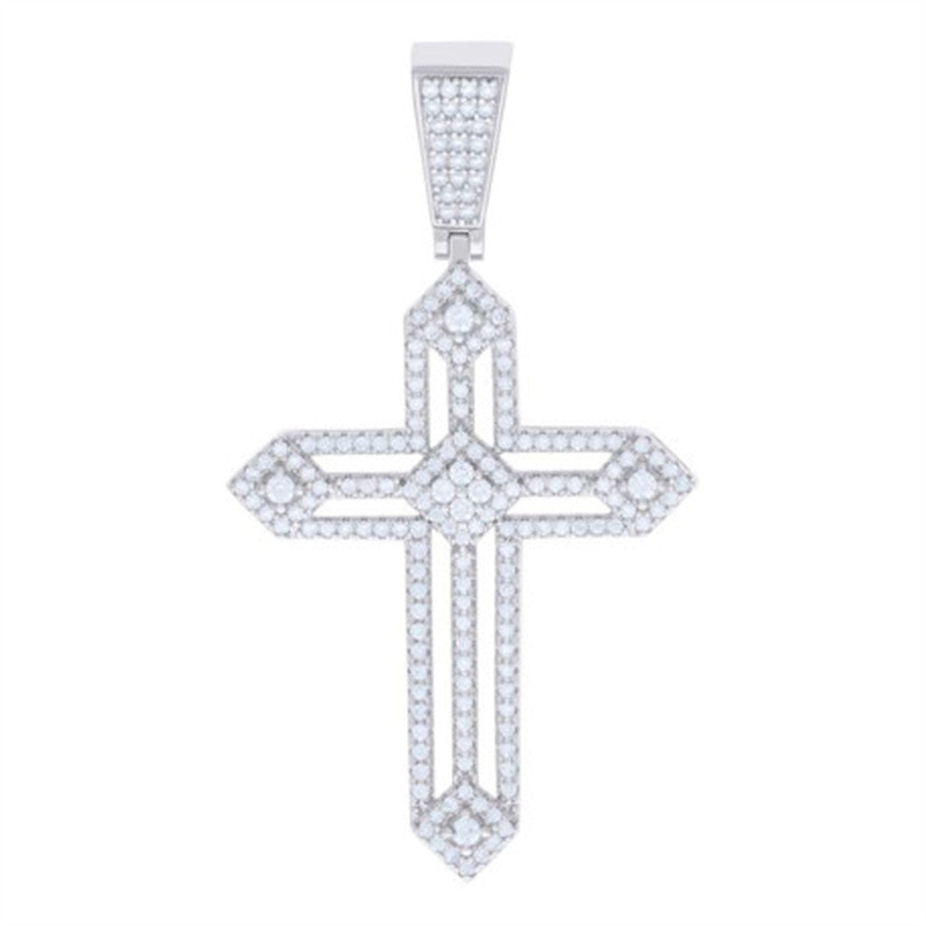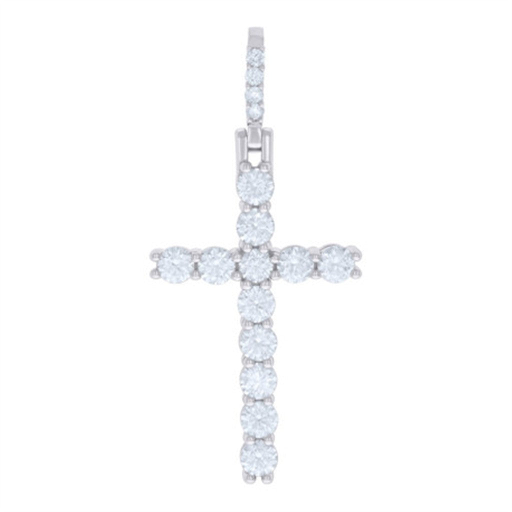 Cross Pendant Sterling Silver White with Oval Blue Topazes