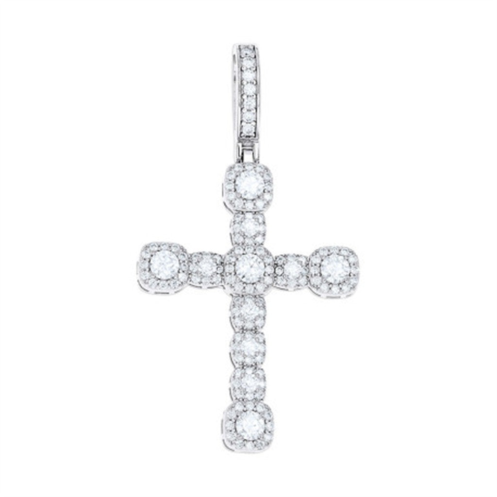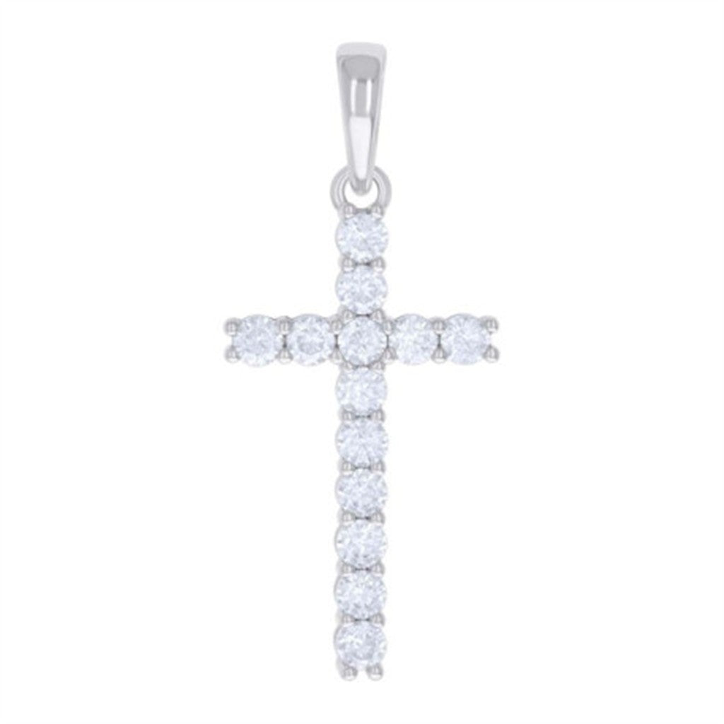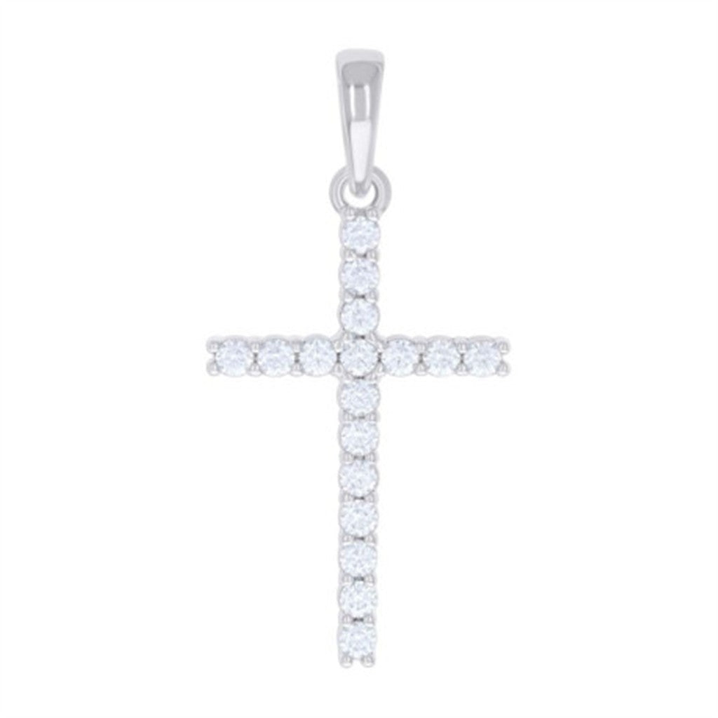 Cross Pendant Sterling Silver White with Oval Garnet Mozambiques
