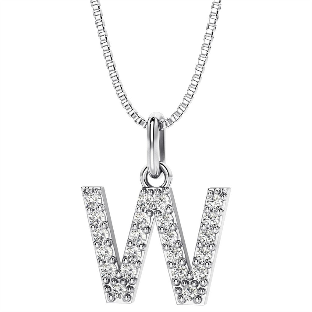 Initial Pendant Diamond Lab Grown Sterling Silver White with Round F/G Diamond