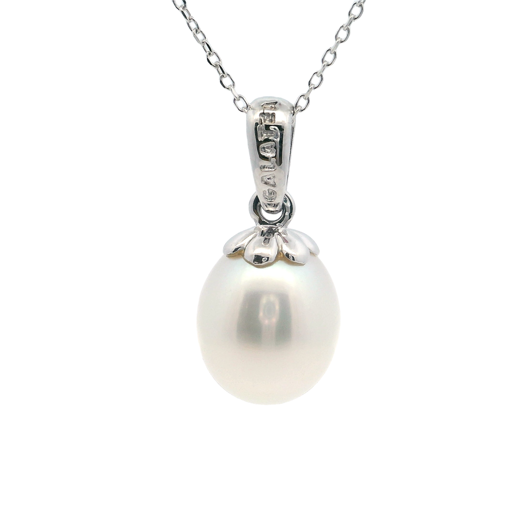 Drop Pearl Pendant Sterling Silver White with Semi Baroque Fresh Water Pearl