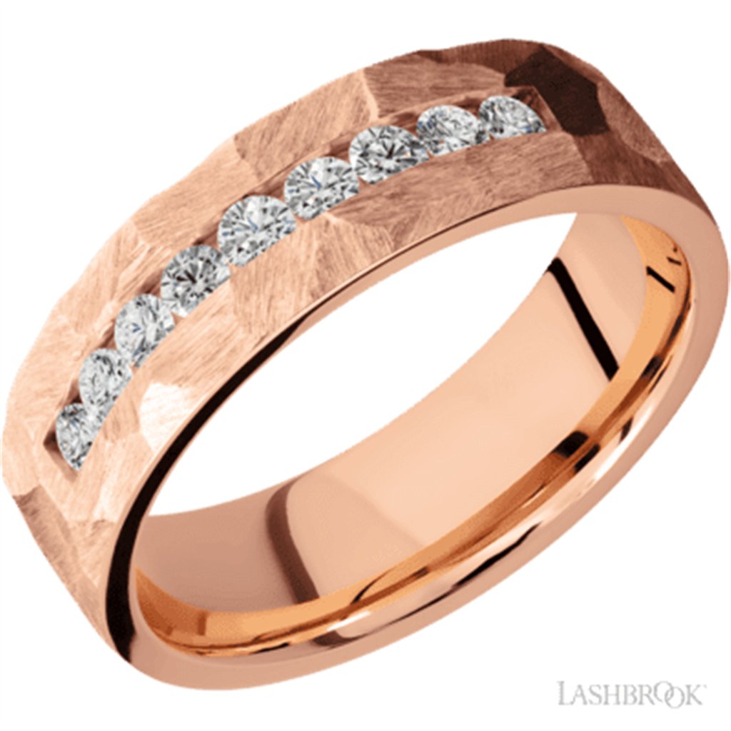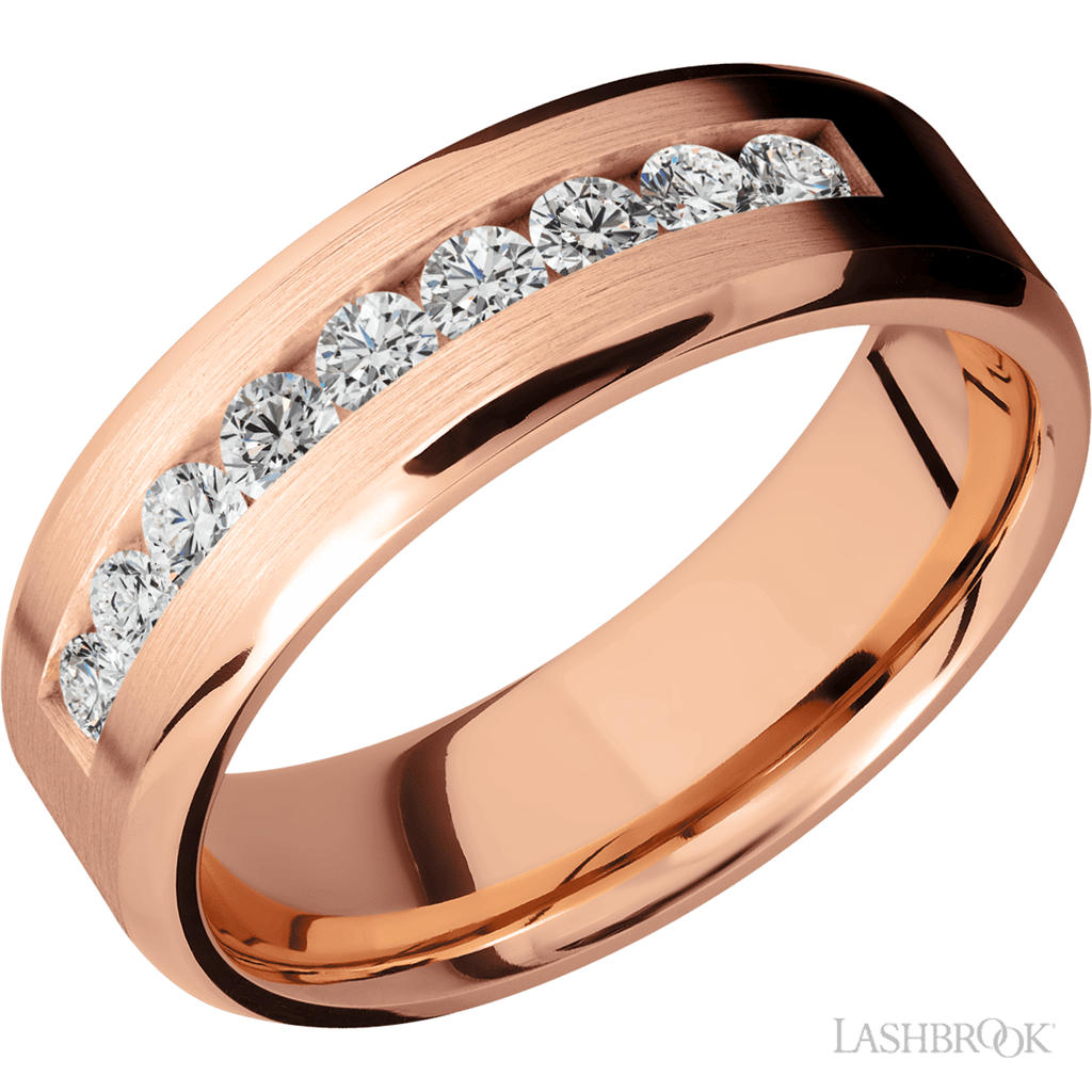 1/2 Anniversary Style Wedding Band 14 Karat Gold Rose 7mm wide with Diamonds size 10