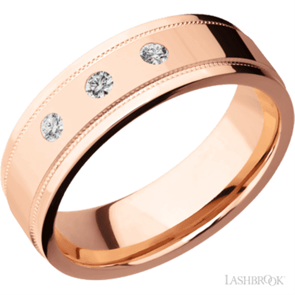 Straight Inlay Style Wedding Band 14 Karat Gold Rose 7mm wide size 10