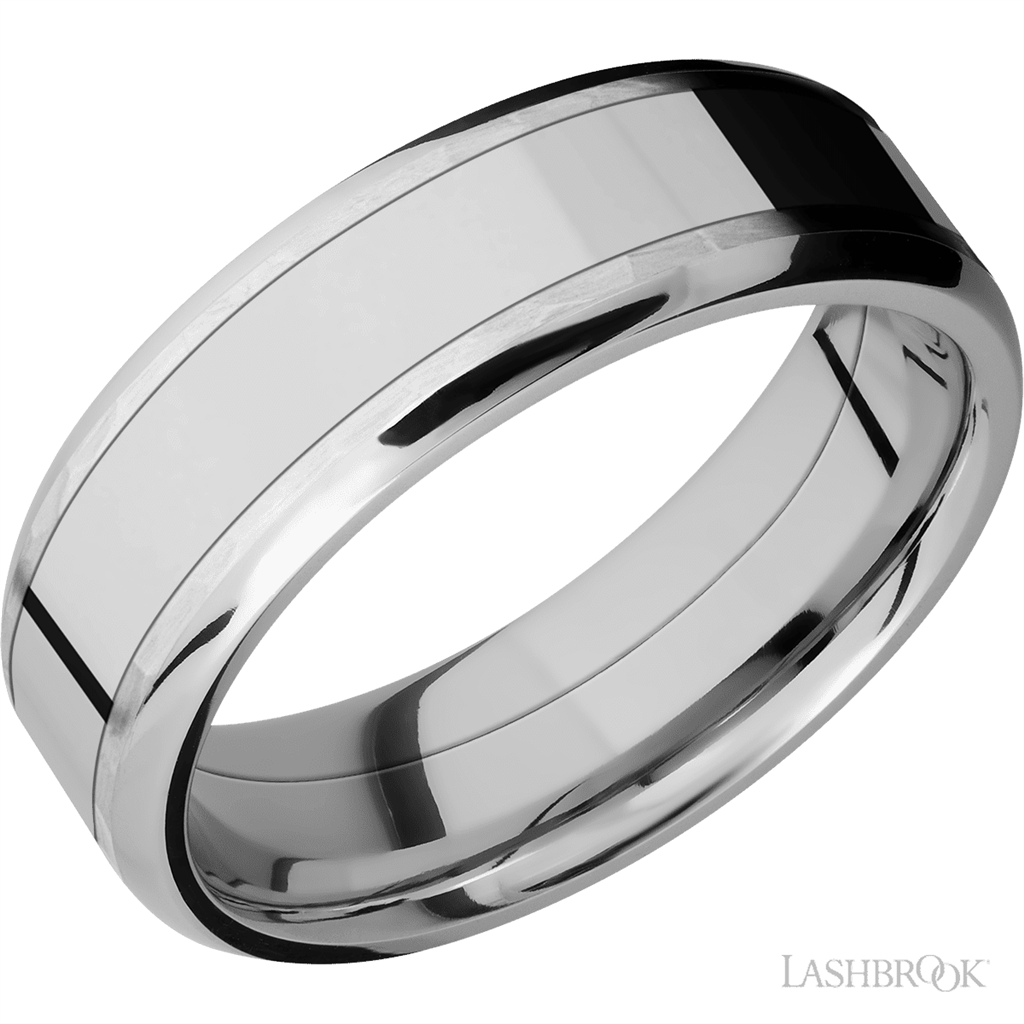 Straight Inlay Style Wedding Band 14 Karat Gold White 7mm wide size 10