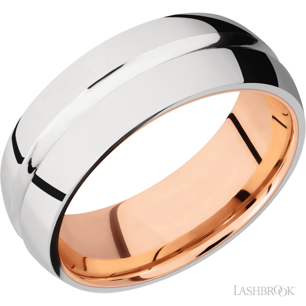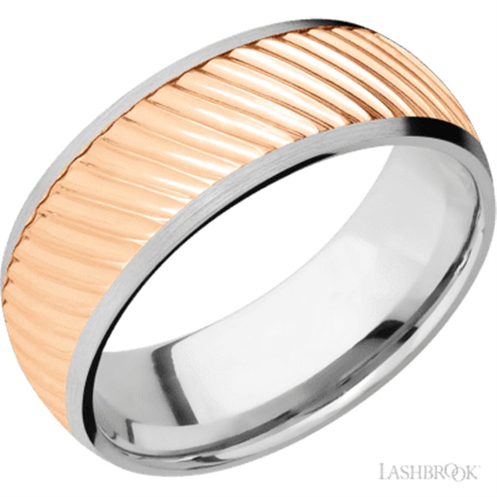 Straight Inlay Style Wedding Band 14 Karat Gold Rose 8mm wide size 10