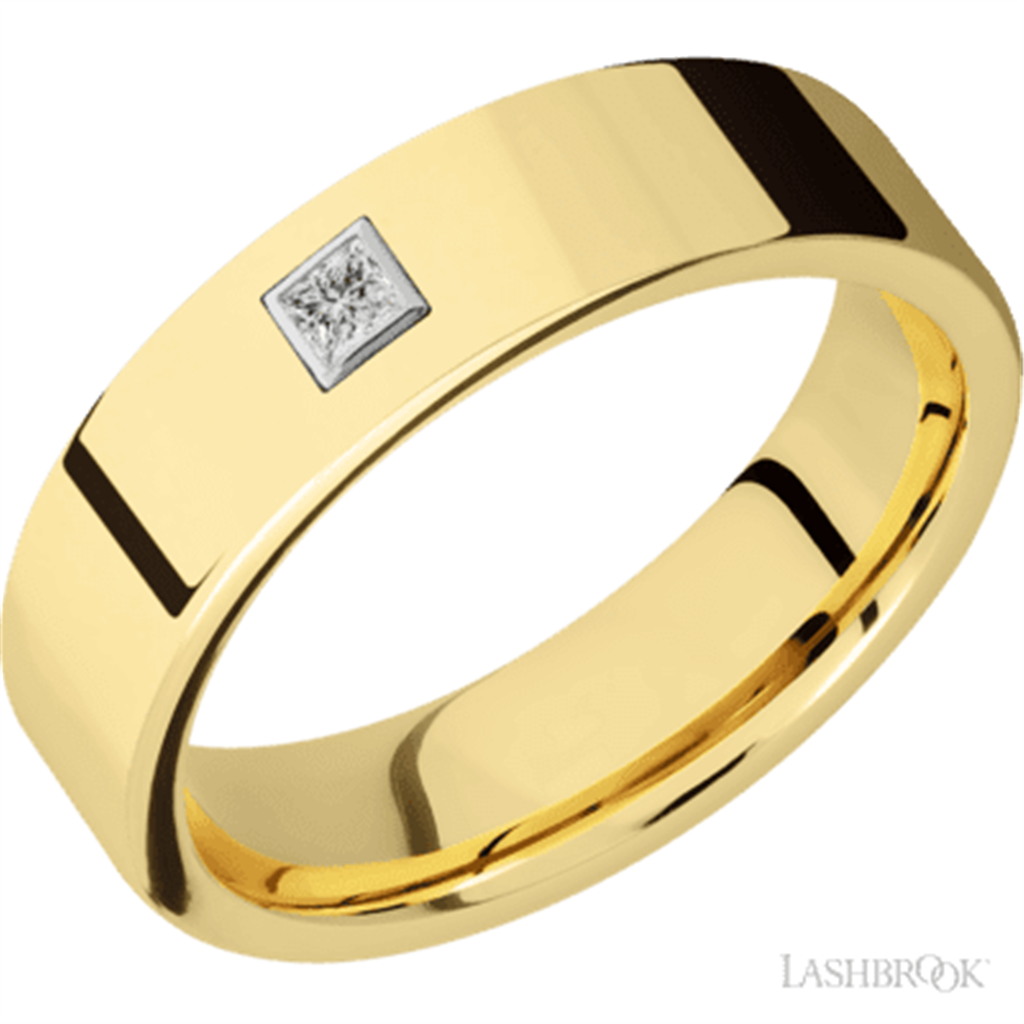 Straight Solid Style Wedding Band 14 Karat Gold Yellow 6mm wide with Diamond size 10