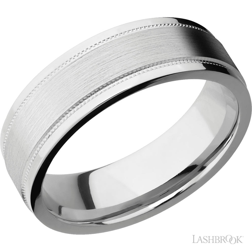 Straight Inlay Style Wedding Band Platinum White 7mm wide size 10