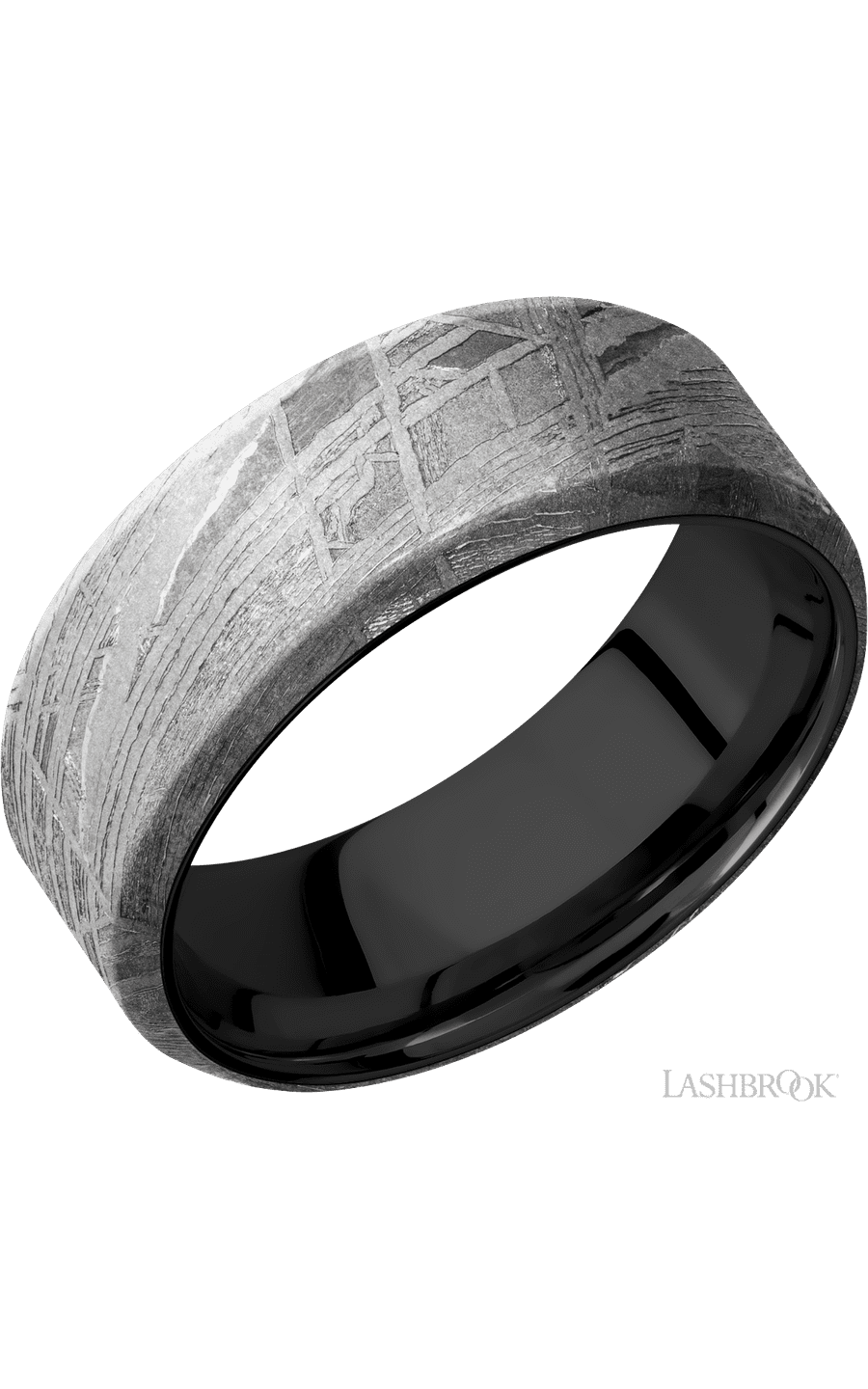 8 mm wide Beveled Meteorite band featuring a Zirconium sleeve.