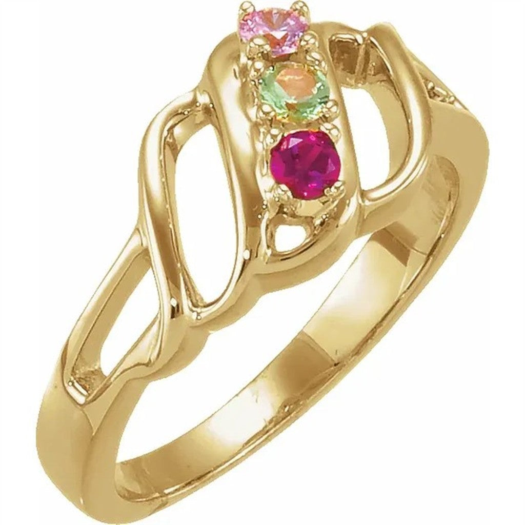 3 Stone Style Colored Stone Ring Alloy Yellow size 6