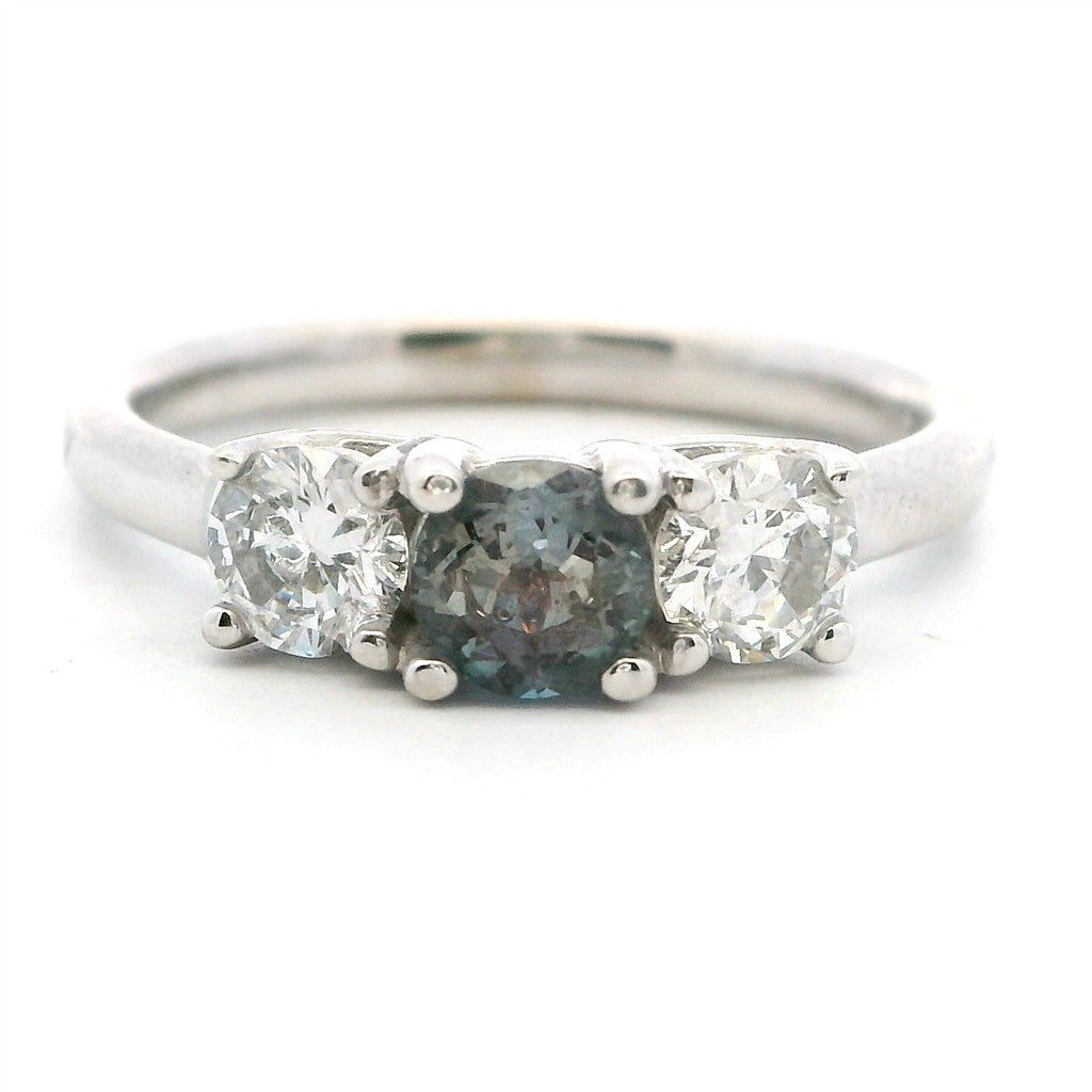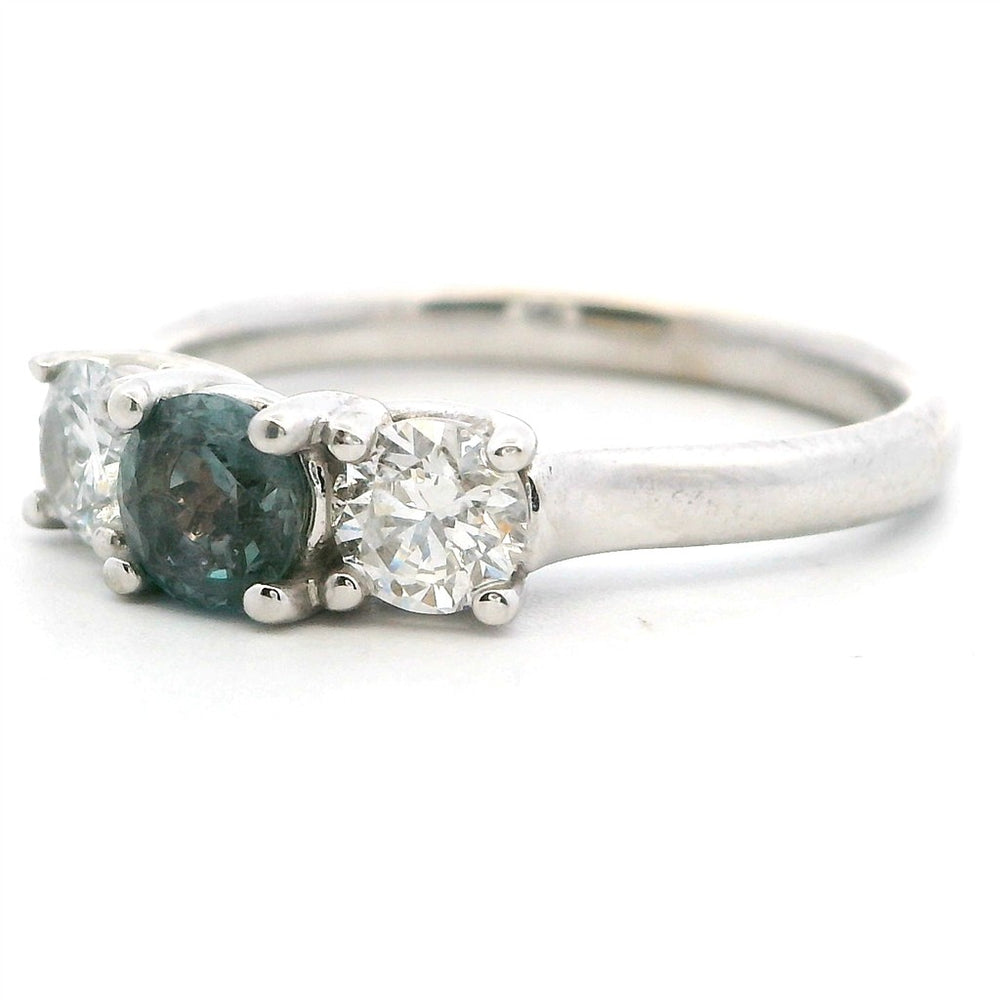 3 Stone Style Colored Stone Ring 14 Karat Gold White with Lab Diamonds & Alexandrite Accent size 6.75