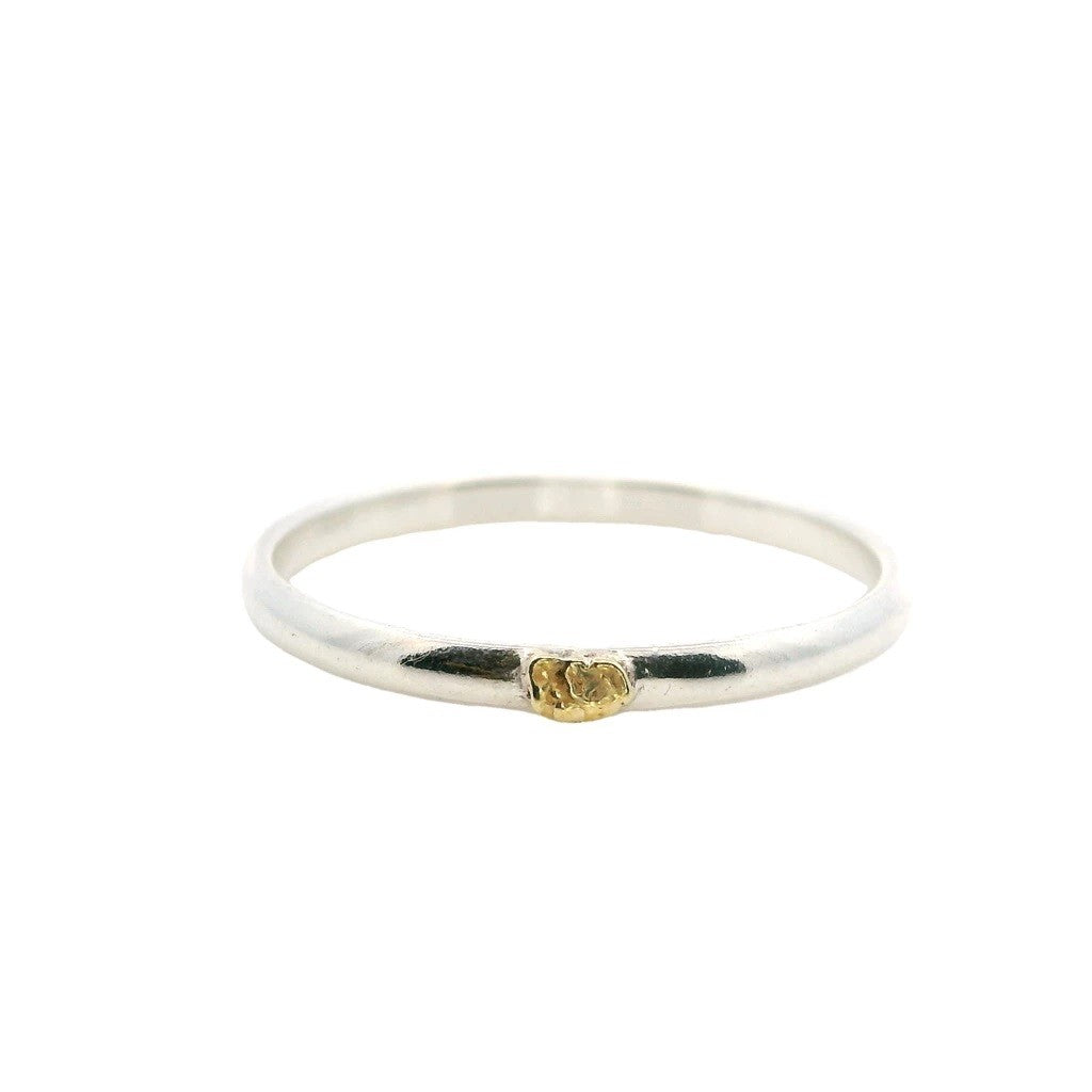 Geometric Ring 2 mm wide Sterling Silver & Alaskan Gold Nugget Size 6